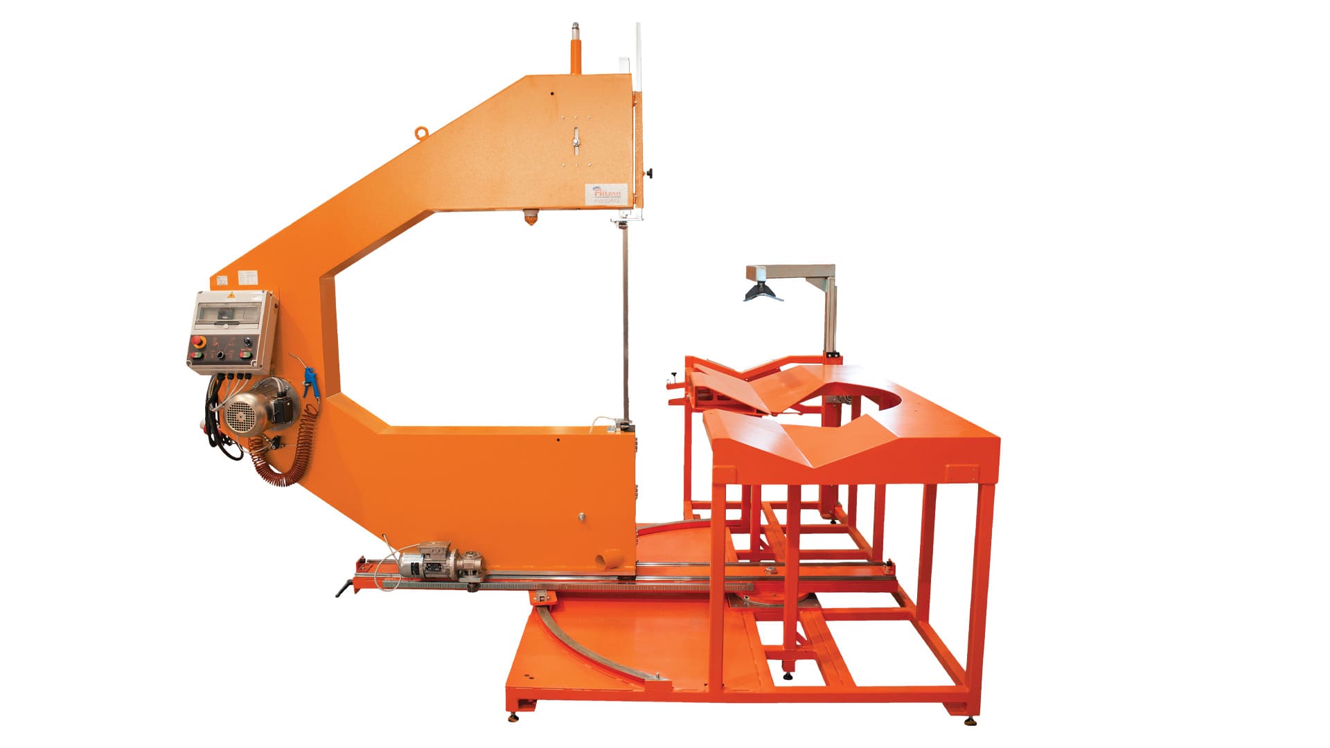 SIGMA 800 PRO band saw by Ritmo for cutting pipes (wall, corrugated, spiral) in HDPE, PP, PVDF, PVC up to 800 mm in diameter. Auxiliary devices help reduce blade stress during cutting, resulting in reduced routine maintenance. Preparation for cutting is simple and fast, and cuts are precise.